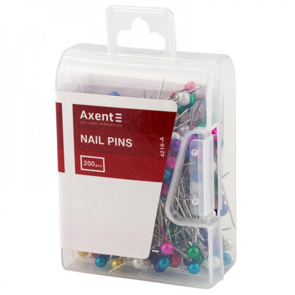 Шпильки кольорові використовуються для побутових і канцелярських потреб. Мають кольорову пластикову голівку. 200 шт. в пластиковому контейнері.
